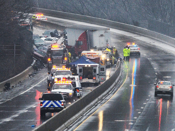 Az eset néhány napja történt New Jersey (USA) egyik elkerülőjén. A szakaszon több tehergépjármű és autó is karambolozott a csúszóssá vált aszfalt miatt. A hétvégén  Philadelphia környékén is kaotikussá vált a közlekedés az ónos eső miatt, ahol az egyik autópályán 60 jármű ütközött össze. A tömegbalesetben 30 ember megsérült, és egy a helyszínen életét vesztette.