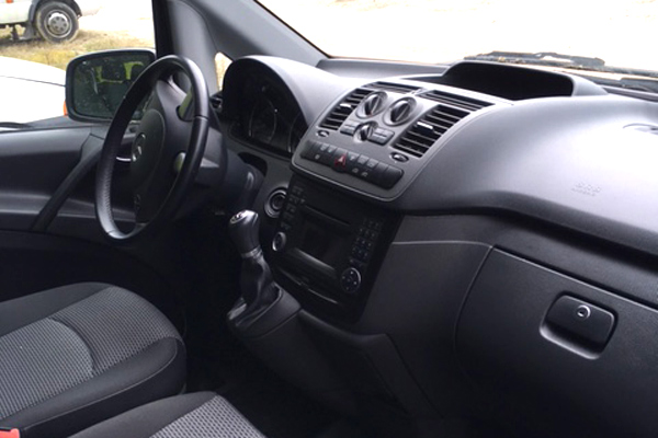 Kivételesen belső teres fotót mutatunk, annyira makulátlan a Merci műszerfala. Az A5 gazdájával ellentétben ennek a 83 ezer km-es Vitónak a tulajdonosa mintha készült volna rá, hogy akarata ellenére viszik a verdát: kiszedte belőle a két hátsó sor üléseit. Amúgy gyönyörűnek tűnik a 3,5 éves dízel kisbusz, 1,5 évig érvényes még a műszakija