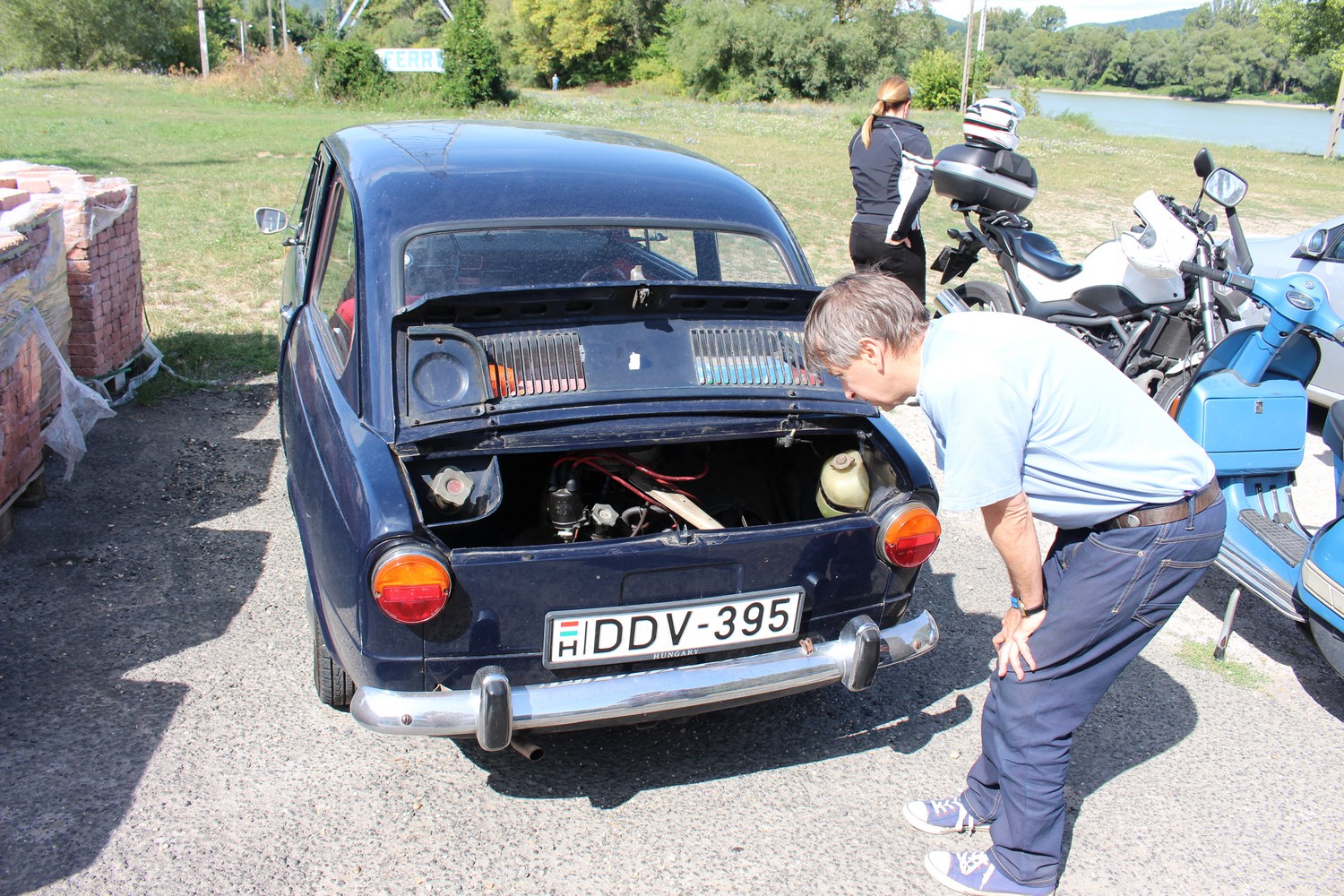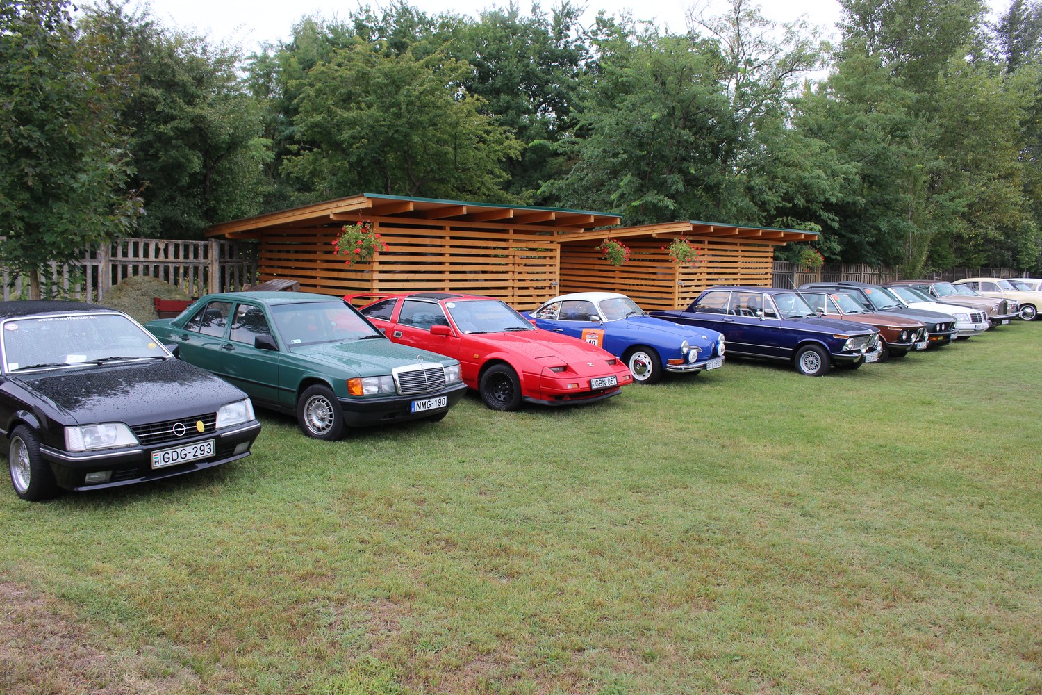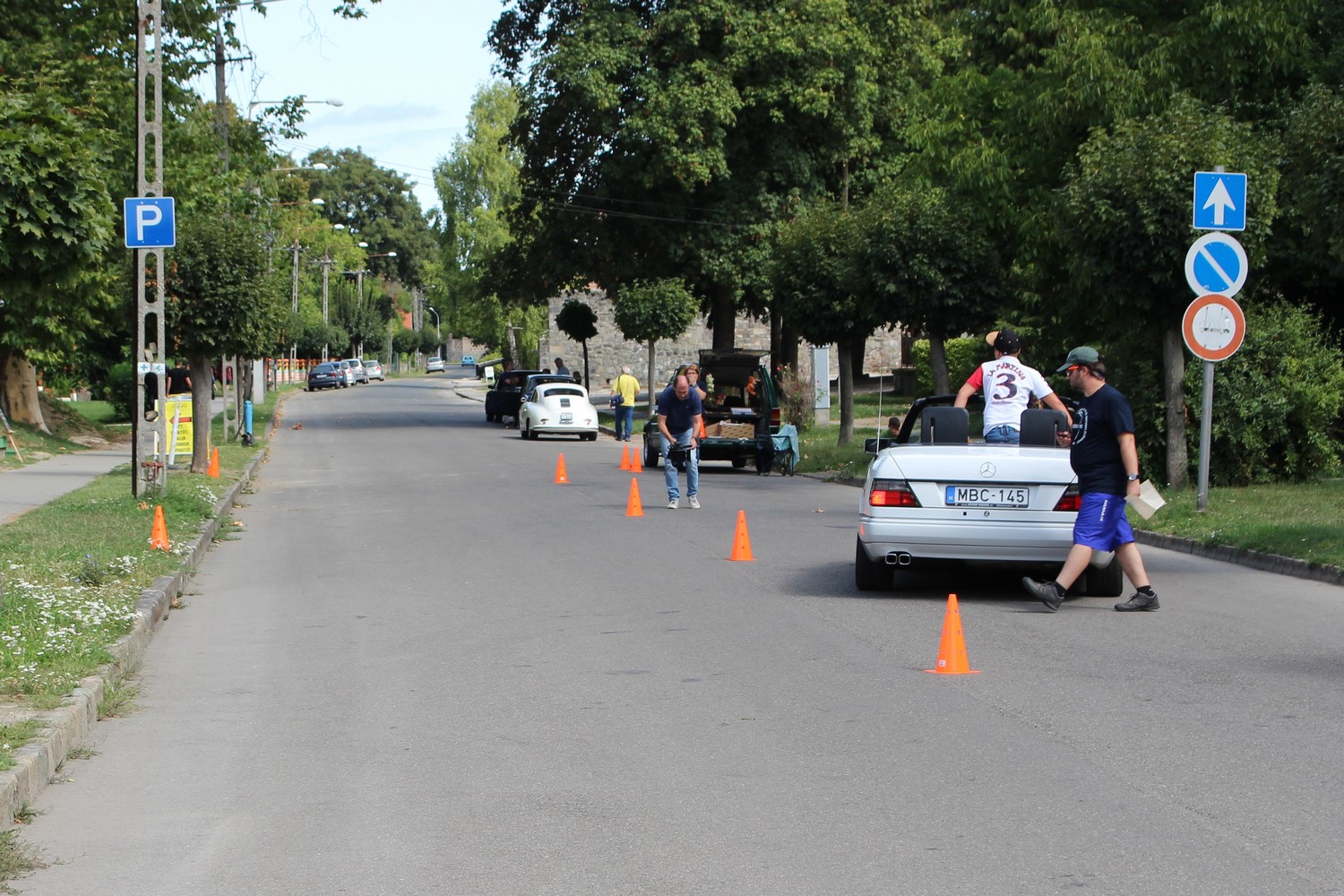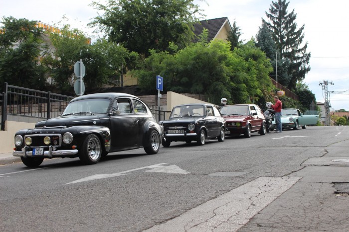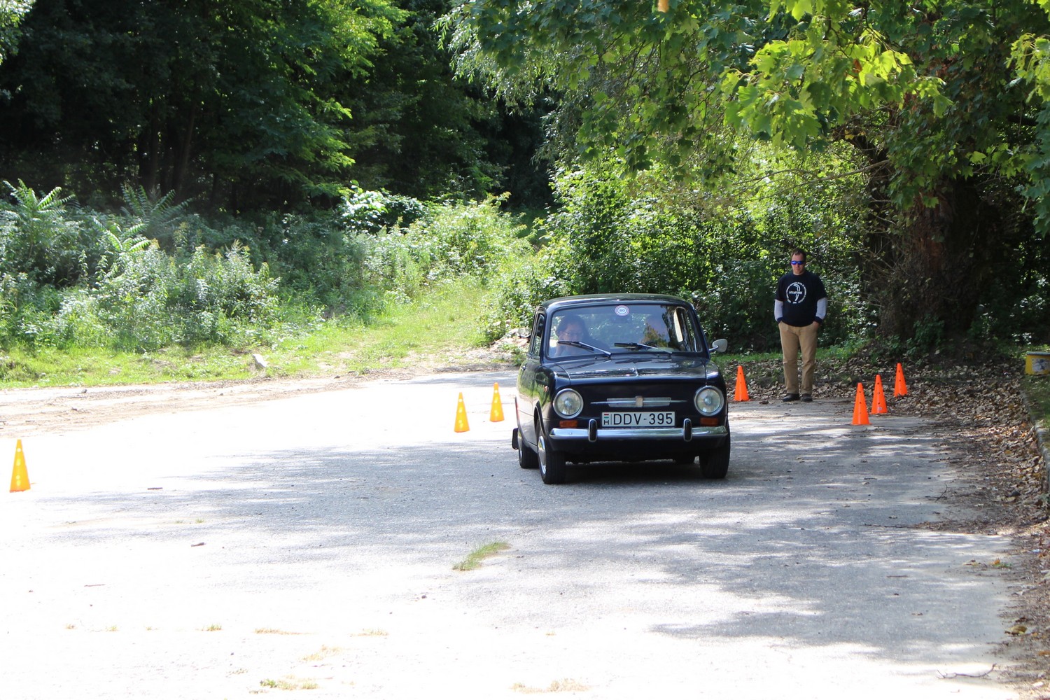 Résztvevőből pedig nem volt hiány, csak azért jelentkeztek hatvanan, mert ennyi volt a limit, ami már augusztus közepére kimerült. (Percenkénti indítással így pont egy óra alatt kel útra a mezőny.) Végül az égen sorakozó felhők láttán páran meggondolták magukat, de így is bőven 50 fölötti létszámú csapat kelt útra, hogy megvívjon a feladatokkal. De milyen csapat! Volt benne rangidősként 1939-es DKW, Rolls-Royce, BMW (ha jól számoltam kilenc, köztük Baur-targákkal, 2002-esekkel), állólámpás Mercedes kupé, Opel Rekord, Porsche 356-os és 911-es, valamint még egy hippisített Fiat halottaskocsi is! Mi – tavalyhoz hasonlóan – a Fiat 850-essel indultunk.