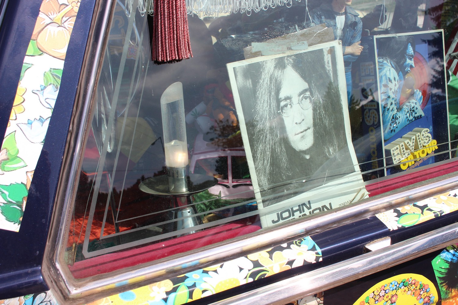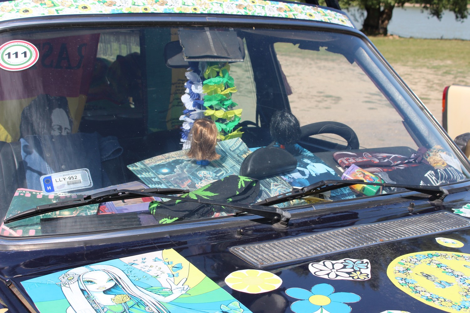 Nemcsak kívül, belül is látványos volt a hippimobil. Minden szükséges kelléket begyűjtött a tulaj
