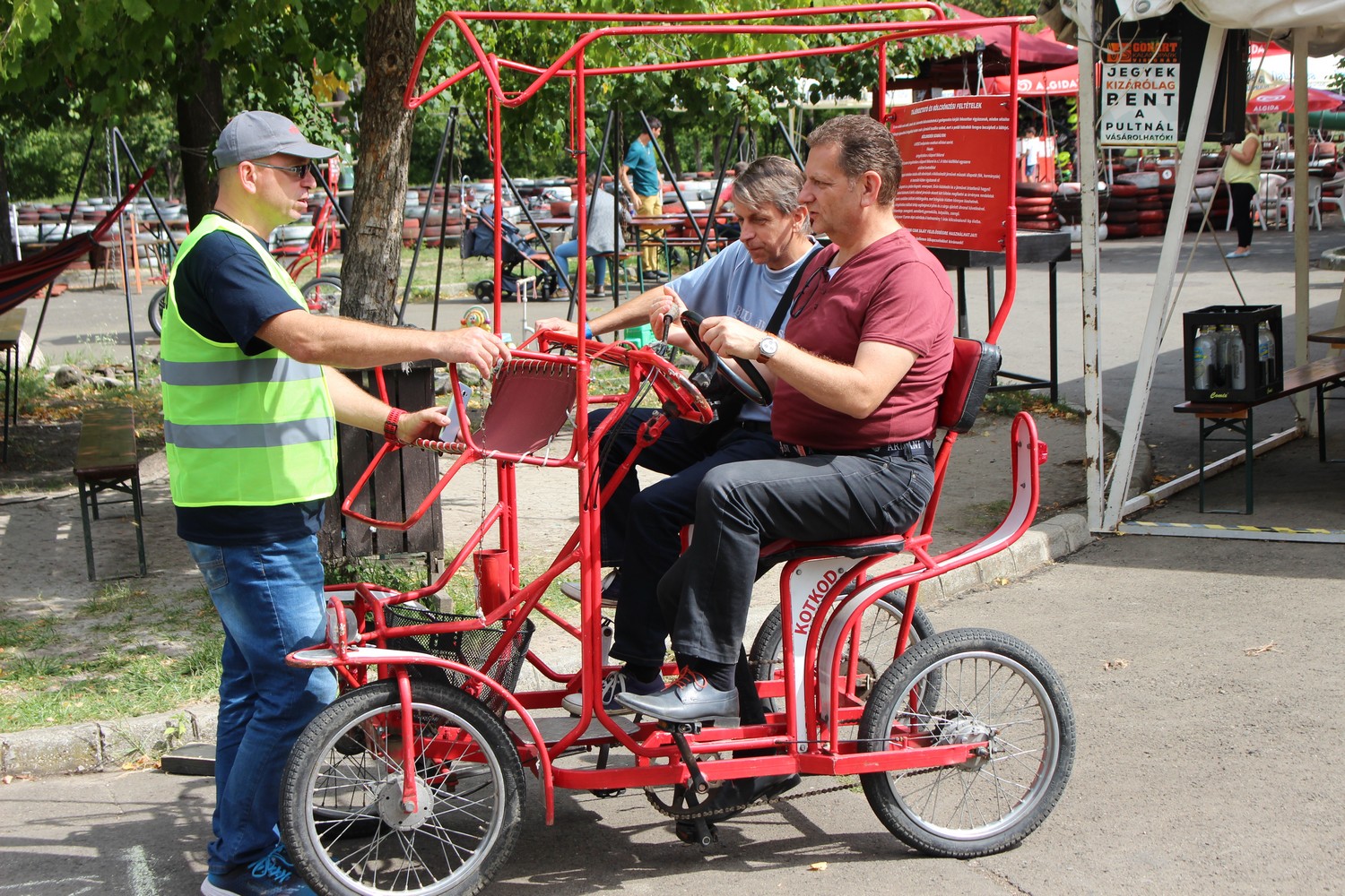 Ez már egyszerűbb. Szlalomozás Bringohintóval. Ernő barátom vállalta a kormányzást