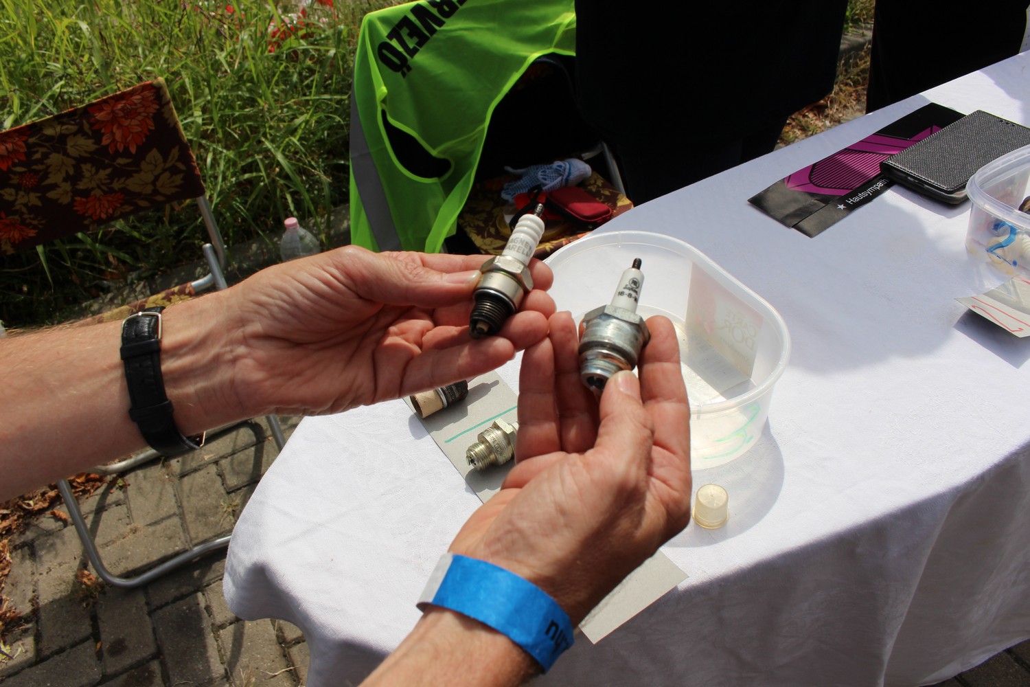 Közben persze ott sorjáztak a feladatok, például meg kellett tippelni az autó valamelyik méretét. Nekem az ablaktörlő hosszát, de volt, akitől az első ajtó hosszát – hogy mit, azt egy szám döntötte el, amit a versenyzőnek kellett megneveznie egytől tízig. Aki, amennyit tévedett, annyit levágtak az egyméteres mérőszalagjából – és persze az nyert, akinek a legtöbb centije maradt. Egy másik feladatnál bringohintóval kellett szlalomozni, egy harmadiknál régi gyújtógyertyákat kellett hőérték szerint sorba rakni, egy másiknál fém mérőszalagot kihúzni egyméteres hosszra, majd elengedés után újra megállítani úgy, hogy csak tíz centi maradjon belőle.