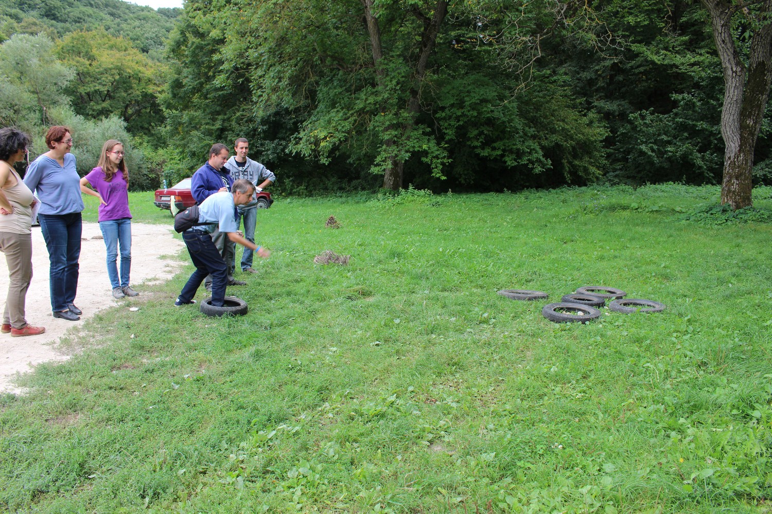 Volt egy kvízkérdéses állomás a Duna partján, ahol kavicsot is kellett gyűjteni. Mint kiderült, azért, hogy ennél az állomásnál célba dobhassunk vele