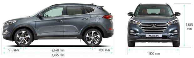 Oldalról a szigorúra vasalt élek, sötétített hátsó üvegek, érdekes mintájú alufelnik látványosak, és hasonlóan hatásos az autó megjelenése a feneke felől is, ahol domborodó lámpatestek, dupla, szintén krómba öltöztetett kipufogó és csinos műanyagbetétek találhatók. Az összkép egész meggyőző, az újkori Hyundai Tucson igazán szép munka.