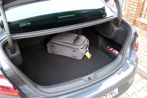 Mindenesetre a csomagtartó kellően tágas, 550 liter igazán imponáló, főként, hogy nem teleszkópok nyitják a csomagtérajtót, hanem hagyományos zsanérok, amelyeket bedobozoltak, így jócskán vesznek el helyet. Ez az érték 20 literrel több a Fluence-énél és a kategória legjobbja.