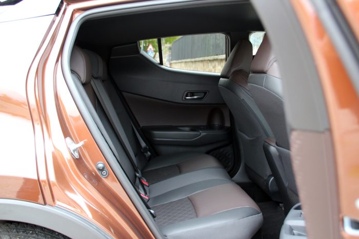 Méretei alapján a Nissan Qashqaihoz hasonlítják, de hiába a 4360 mm-es hossz és a 2640 mm-es tengelytáv meg az ügyesen variált TNGA padlólemez, azért a helykínálat és a megjelenése alapján inkább a Nissan Juke-tól hódíthatja el a vásárlókat a frissebb C-HR. Különösen a hátsó sorban ülők érezhetik kellemetlenül magukat a jelentősen korlátozott kilátás, a hamar fogyó fej- és lábtér miatt. Csomagtartója az alsó középkategóriában (Mazda3, Astra, Focus) megszokott mérethez igazodik 377, támladöntés után 1112 literes értékével.
