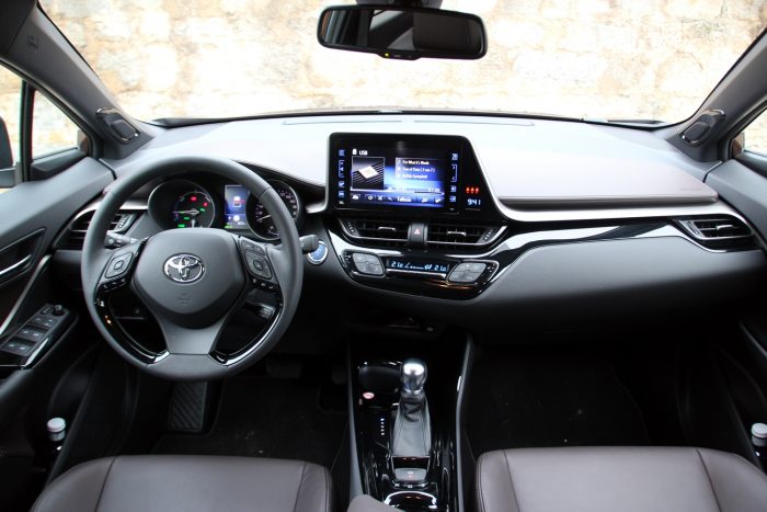 Megfelelve a korszak trendjének, a C-HR műszerfalát is hangsúlyos, 8 colos érintőtábla uralja, aminek az oldalára érintőgombok kerültek, tehát a JBL audiorendszer hangerőállításához, a navigáció előcsalogatásához nem kell menüt böngészni. Kezelése rendkívül egyszerű, nem szorul különösebb megszokásra és mivel a felület eleve a középkonzol tetején trónol, éppen a látómezőben, így az út is szem előtt marad. Az egyedül árválkodó USB-csatlakozónál és a telefontükrözésnél is fontosabb tény, hogy szerencsére maradt hely a Szent Japán Kvarcórának is.