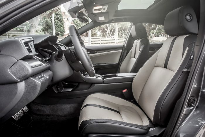 12 év után aztán végre felismerte a márka, hogy a Civic-vevők nem (csak) rekordméretű puttonyt, hanem sportos vezetési élményt (is) akarnak. Szóval a tank visszament a hátsó ülés alá, az új Civicben pedig sikerült az eddig túl magas vezetőülést visszahelyezni jó mélyre, szinte a padlóra. Ettől a csomagtérpadló lépcsős lett ugyan, a hátul ülők haja kissé súrolja a tetőt, és már nem lehet beállítani egy kisebb bringát a kabinba a hátsó ülések elé – viszont megint jó lett vezetni a kocsit! Ráadásul a csomagtartó még így is 478 literes, ezzel továbbra is kategóriaelső a Civic.