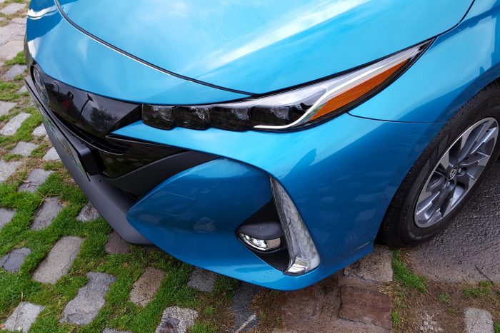 Az autó formájáról szóló részben azért ecseteltem ilyen hosszan mindezt, mert az egyliteres autó, amely kifejezést most írok le utoljára, becsszó, a tavaly ősszel bemutatott negyedik generáció konnektoros változata, a Plug-in Hybrid Prius második generációja. S mint ilyen, külsőleg a 14 éve elkezdett dizájn-irány folytatása, az ijesztő testvér némileg fogyaszthatóbb orral és farral feldobott változata. Akinek az ék formával nincs baja, ezt az arcot a baromira vagány első lámpával, és a rendkívül látványos hátsóval még akár meg is szeretheti. Nekem ez már tetszik, pedig ugyanaz a kasztni.