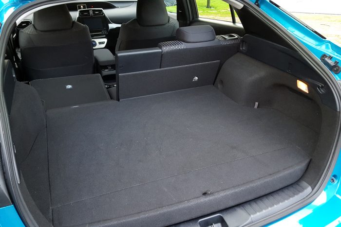 A csomagtér padlója 160 mm-rel magasabbra került, hogy beférjen alá a korábbinál sokkal nagyobb akkumulátor, így meglehetősen lapos a hely. Hivatalosan 360 liter, ezt szinte biztosan a hátsó üvegig mérték ki ennyinek. Családi nyaraláshoz kell a tetőbox