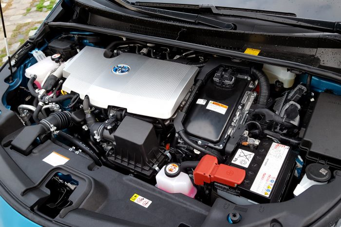 Lecserélhetetlen a tökéletes, Atkinson ciklusú 1,8-as benzinmotor, viszont a csomagtartó alá a korábbi 4,4 helyett immár 8,8 kWh-s lítium-ion akksicsomagot préseltek. 60 százalékkal nagyobb, 87 helyett 145 liternyi méretű, és 50 százalékkal súlyosabb, 80 helyett 120 kilós. Habár a rendszer összteljesítménye itt is 122 lóerő, az elődhöz képest 83 százalékkal több ebből az elektromotorok együttes teljesítménye, merthogy ez az első Toyota-hibrid, amiben kettős elektromotoros hajtási rendszer működik.