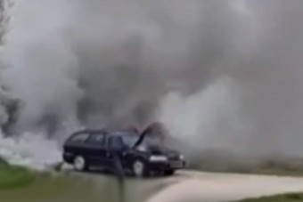 Még azelőtt sikerül leállítani az autót, mielőtt kigyulladt volna. A videót elnézve ez csak pár pillanaton múlt.