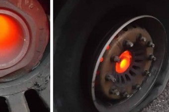 Amikor ilyen szinten fog be a csapágy, a legjobb, amit csinálhatunk, hogy azonnal megállunk. Ez a teherautós valószínűleg későn vette észre, hogy baj...