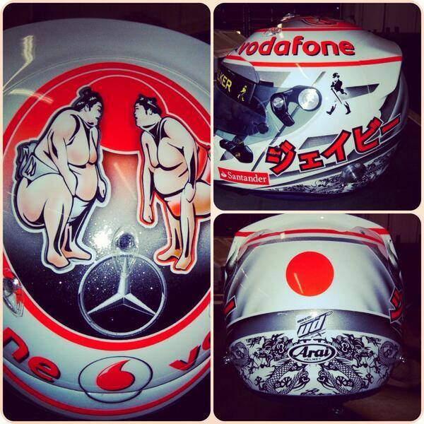 Az egyedi sisakok divatja nem szűnik, a szingapúri kavalkád után Japánra hozott újra átrajzolt bukót. Ezúttal Jenson Button változtatta meg a szokásos festést, ám esetében nem hirtelen jött szeszélyről van szó. Barátnője, Jessica Michibata okolható a hóbortért, az elbűvölő modell szülőhazája előtt tiszteleg ezzel az angolok 2009-es, Japán-bolond bajnoka.