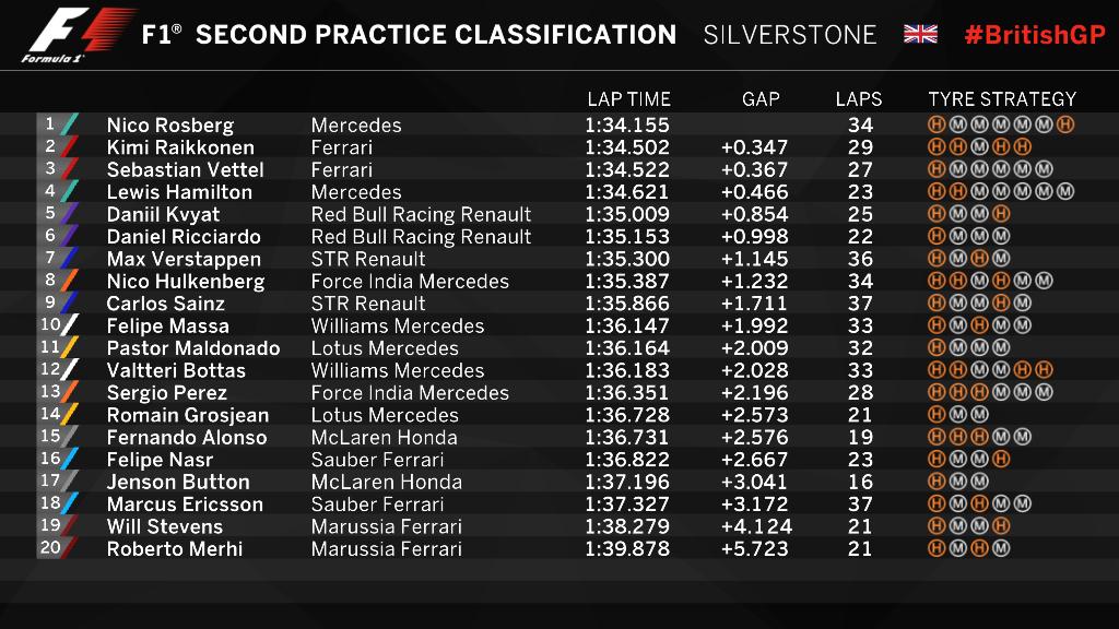Az ausztriai győztes Rosberg mögött a Ferrari párosa végzett – Räikkönen, Vettel sorrendben -, Hamilton közel fél másodpercet kapott. Az angol gyors körökön és hosszabb etapon is bajban volt az autó viselkedésével, komoly munka vár rá a helyes beállítások megtalálására.