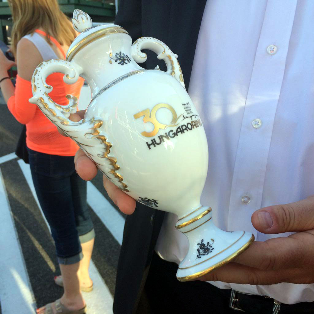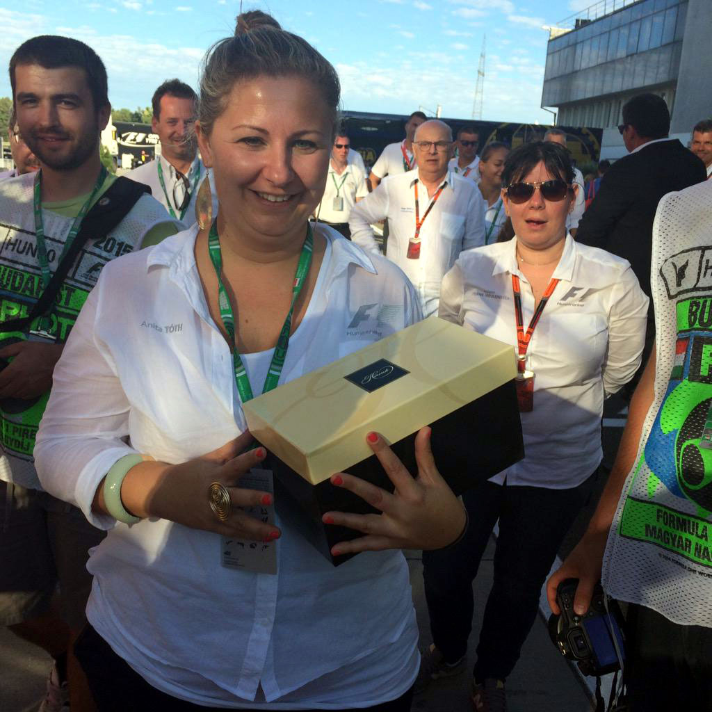 A jubileumi Magyar Nagydíj szervezői nem voltak restek, kora estére már kerítettek is egy nem hivatalos győzelmi trófeát, amit át is adtak a győztesnek.