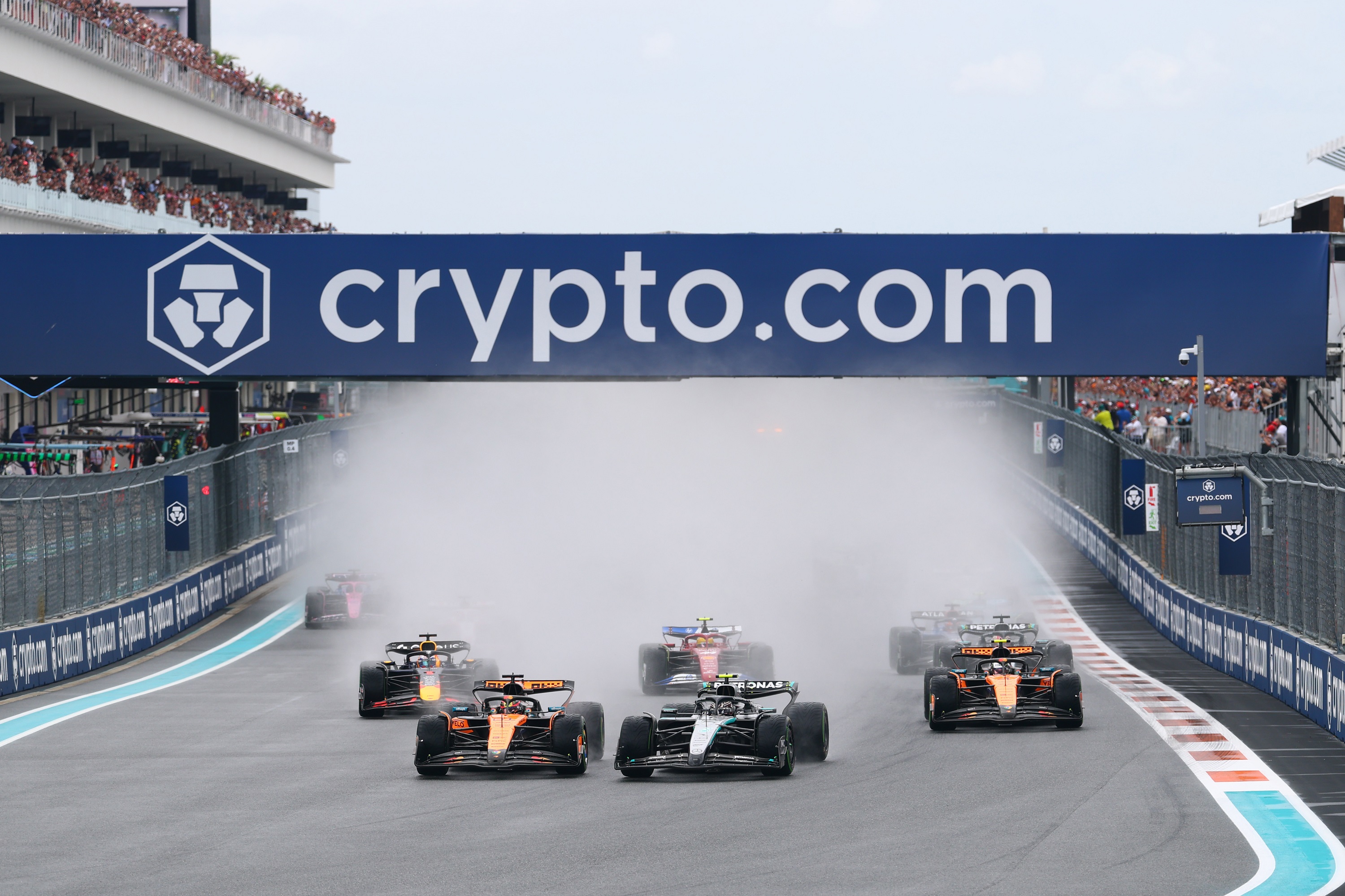 A mclarenes Lando Norris nyerte a Forma-1-es Miami Nagydíj sprintjét. A 19 körös futamot meghatározták a nedves körülmények, melyek azok után fogadták a mezőnyt, hogy 90 perccel a tervezett rajt előtt eleredt az eső, de a tervezett rajthoz közelítve kezdett rá igazán. Ennek Charles Leclerc meg is itta a levét: a monacói már a rajtrácsra kivezető körön odavágta a Ferrarit.
