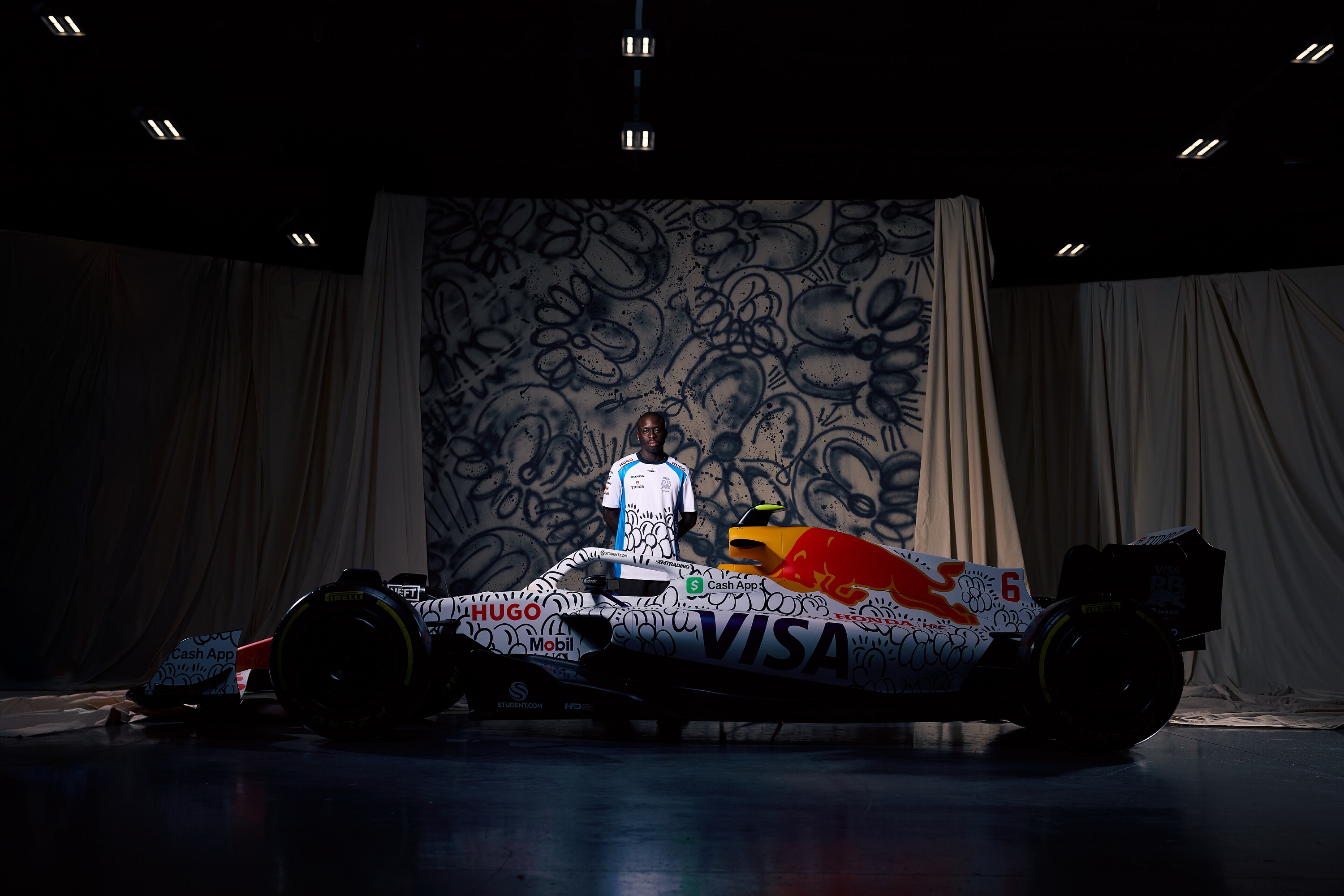 Az összefújt autón a ruhákon is szereplő mintákat láthatjuk, sőt, ilyen lesz Isack Hadjar és Liam Lawson összes szettje is, melyet Silverstone-ban viselnek.