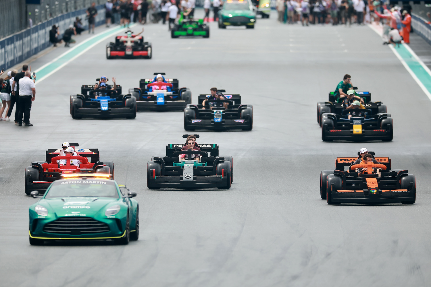 A Forma–1 Miami Nagydíjon igazán különleges pilótaparádét rendeztek. A szokásokkal ellentétben nem hagyományos sportautókban vagy egy kamion platóján utazva hajtottak körbe a pályán a versenyzők, hanem erre a célra épített versenyautókkal. Bár látszólag hasonlítottak a Forma–1-futamokon használt járgányaikra, ezek legóból épültek. Minden csapat számára egy-egy készült 1:1 méretaránnyal, de ezek kétszemélyesek.