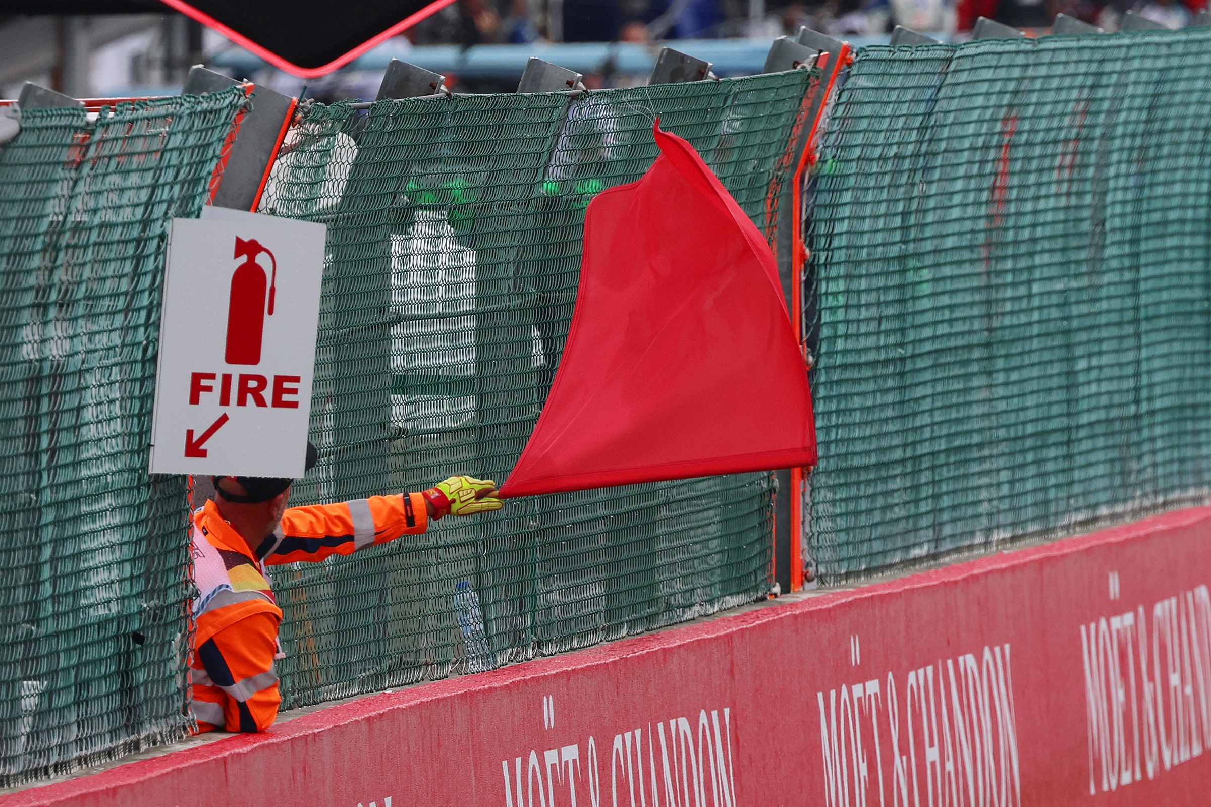 A volna szó nem volt véletlen: a futam nem kezdődött el időben, a biztonsági autós felvezető kör alatt döntöttek is arról, hogy felfüggesztik a rajtprocedúrát, és piros zászló hatálya alatt álltak az események. A tervezett rajt után 15-20 perccel ráadásul egy, a korábbiaknál is komolyabb esőfelhő érkezett, jócskán megakasztva a lebonyolítást.