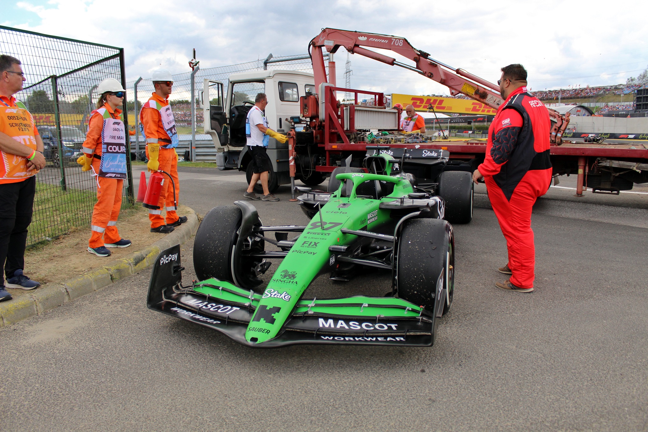Az ifjonc Aronnak csak az edzés fele jutott, az észt a 13-as kanyar bukóterében műszaki hibával kényszerült félreállni – elkeserítő lehetett, hogy már nem tudott eljutni a bokszutcáig. Előkerült a sárga, majd másfél percre virtuális biztonsági autót rendeltek el, de a Saubert gyorsan betolták a megnyitásba.