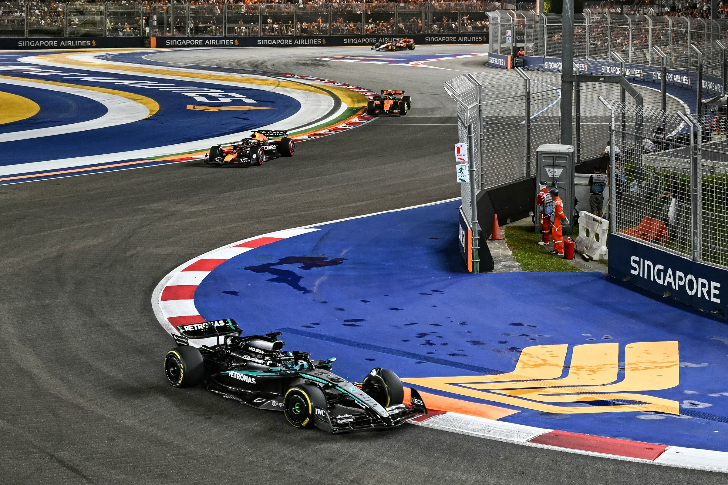 A mercedeses George Russell nyerte a Forma-1-es Szingapúri Nagydíjat a Red Bull hollandja, Max Verstappen, illetve a mclarenes Lando Norris előtt. Az eredményeknek köszönhetően matematikailag is biztossá vált a McLaren konstruktőri bajnoki címe.