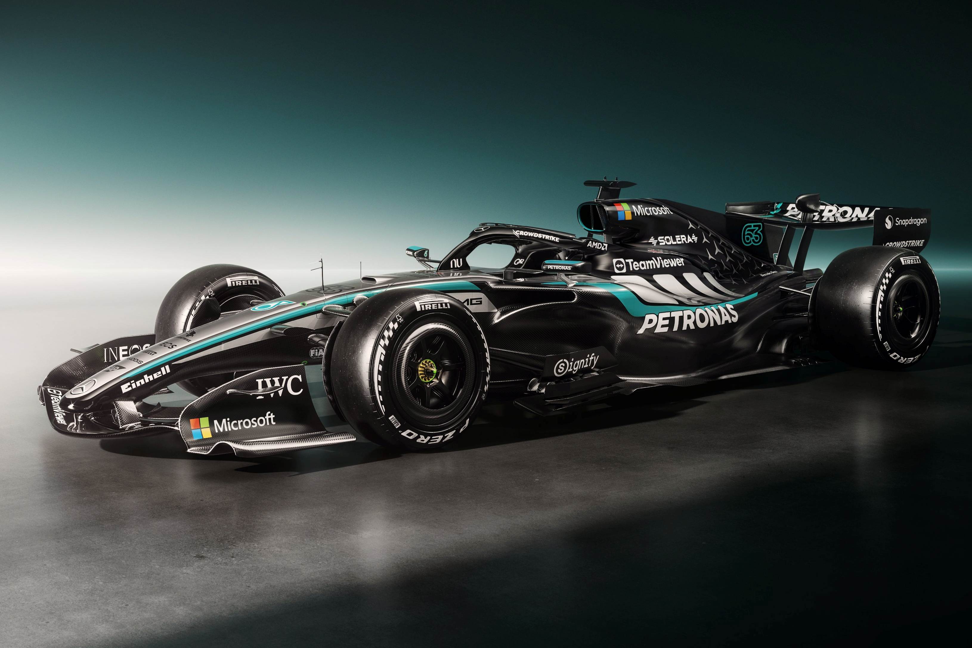 Ami magát az autót illeti, alapvetően csak a festésről érdemes beszélni, hiszen a kasztni egészen más lesz a szezonnyitóra, az viszont biztos, hogy dinamikusabb lett az ezüst és a fekete játéka, de ugyanennyire feltűnő lehet, hogy a felső légbeömlő oldalaira, a társtulajdonos Ineos helyére a Microsoft logója került.