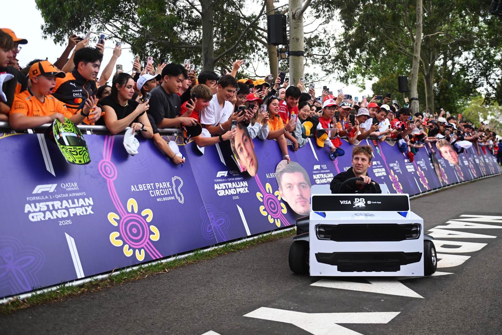 Két perc kellett az első sárga zászlóhoz is, a hazai kedvenc, Oscar Piastri McLarenjében ment el a hajtás. Az ausztrál alatt életre kelt az autó, de közben a mezőny egyetlen újonca, a Racing Bulls-os Arvid Lindblad állt le a bokszutca-kijáratnál. Virtuális biztonsági autót (VSC) rendeltek el, míg visszatolták az autót a bokszba. A McLaren világbajnoka, Lando Norris a sebességváltóra panaszkodott a rádión.