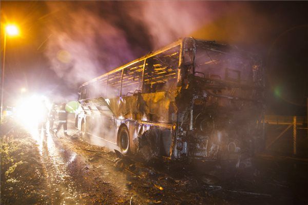 A kigyulladt járművet – amely teljesen elzárja az utat – a nagykanizsai hivatásos tűzoltók két vízsugárral oltották, a busz átvizsgálása még tart.