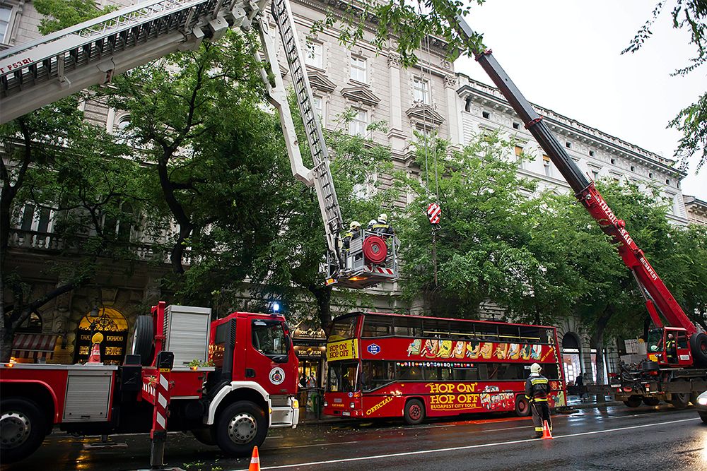 Fának ütközött egy városnéző busz Budapesten – Képek