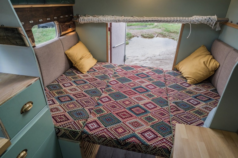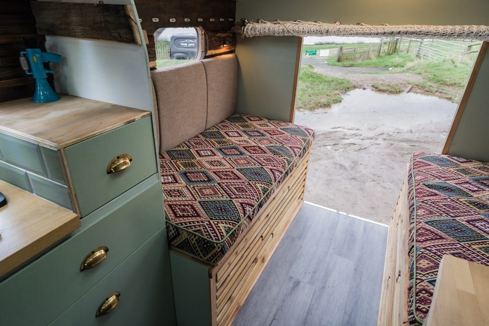 Mindez annak is köszönhető, hogy eltávolították a víztartályt, így sok hely szabadult fel a málhatérben. Természetesen a kabin maradt eredeti, így továbbra is hat fő tud utazni az első, illetve a második sorban összesen. A második tengelynél két, egymással szemben lévő üléspadot helyeztek el. Ezekből estére egy középső matrac segítségével egy kétszemélyes ágy alakítható ki. A fekvőalkalmatosságot a hátsó ajtón keresztül is meg lehet közelíteni.