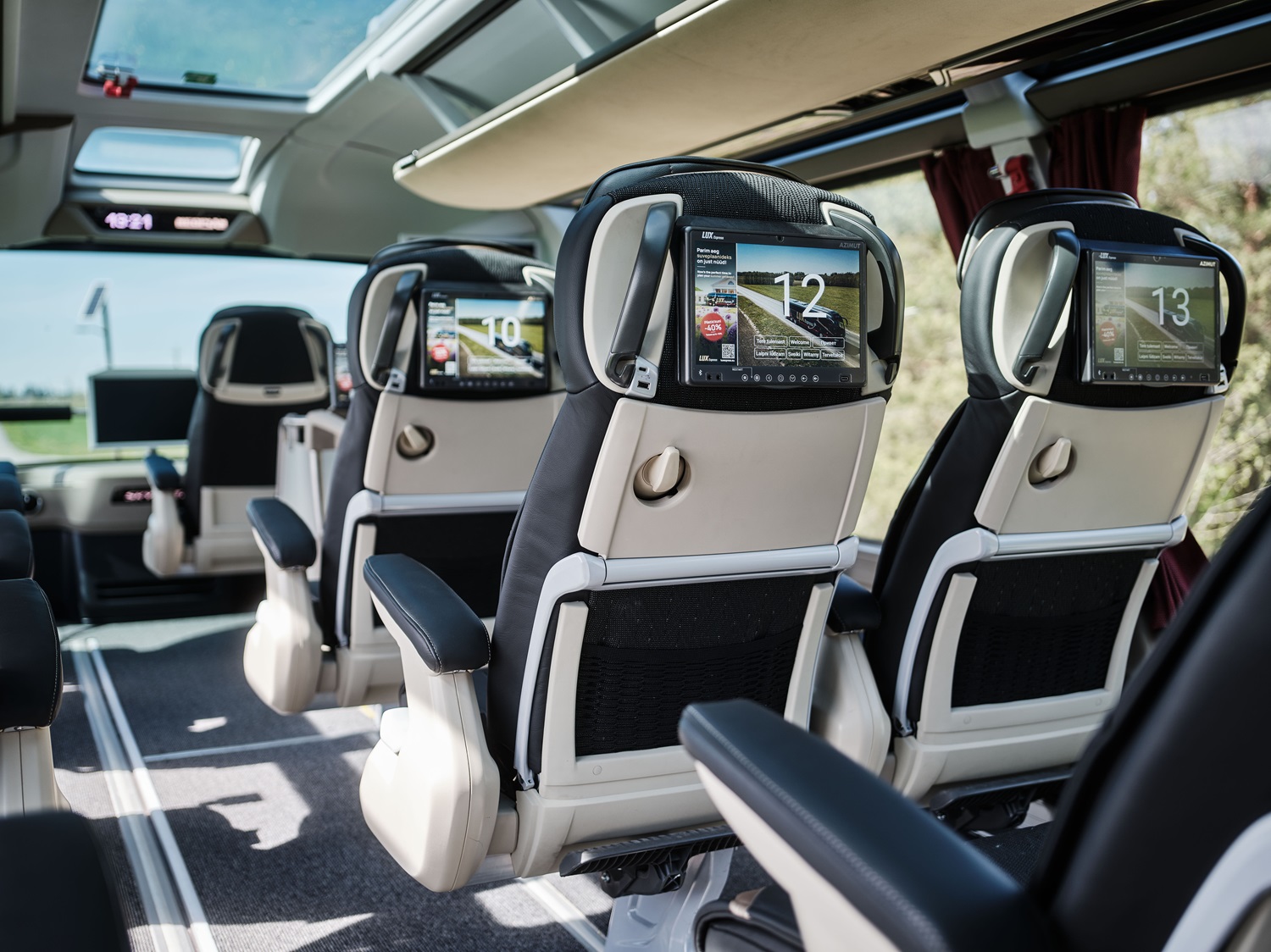 Az utazás kényelmét tovább fokozza a korszerű légkondicionáló rendszer, a teljes értékű kávéfőző és a mosdókagylóval felszerelt toalett. Az ülések ergonomikus kialakítása, a széles fejtámlák és a praktikus karfák garantálják, hogy minden utas luxus körülmények között pihenjen. Nehéz lenne olyan kényelmi funkciót említeni, amelyet ezek a buszok ne kínálnának.