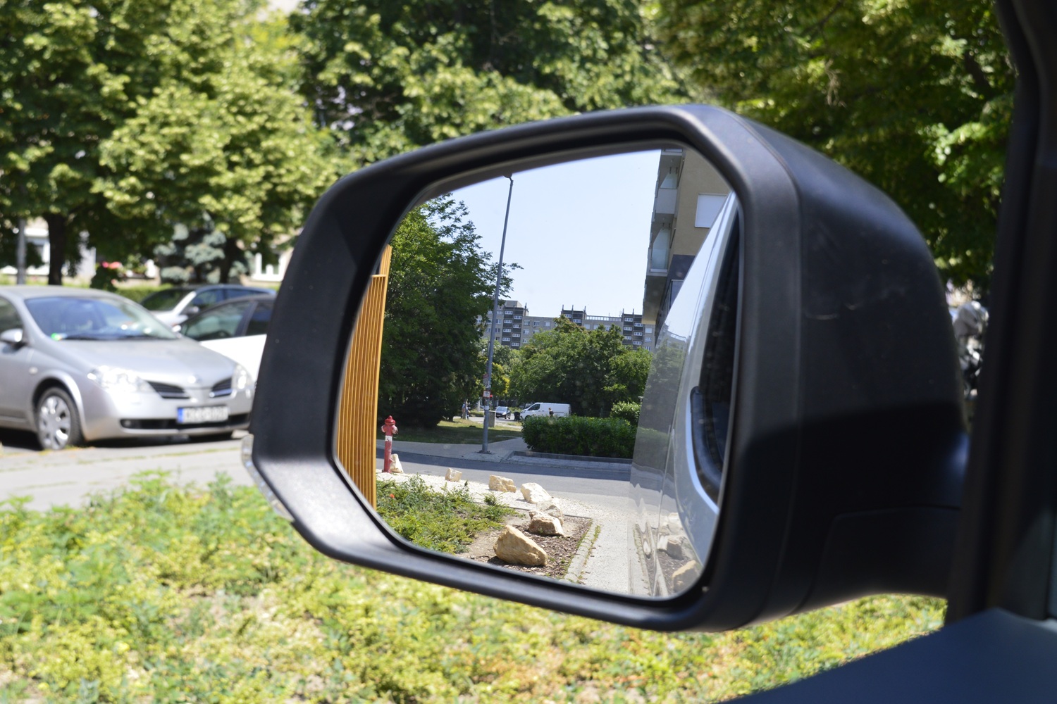 Oldalra nehéz belőle kilátni, a külső visszapillantó tükrök viszont kellően nagyok, remekül csökkentik a holttereket. A tükröknek és a precíz kormánymű révén könnyedén lehet vele sarok tolatni.