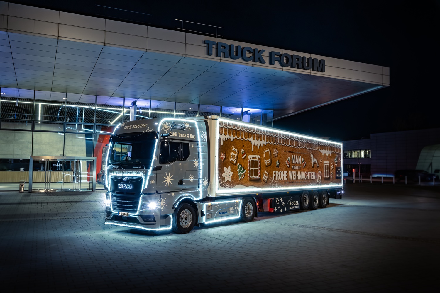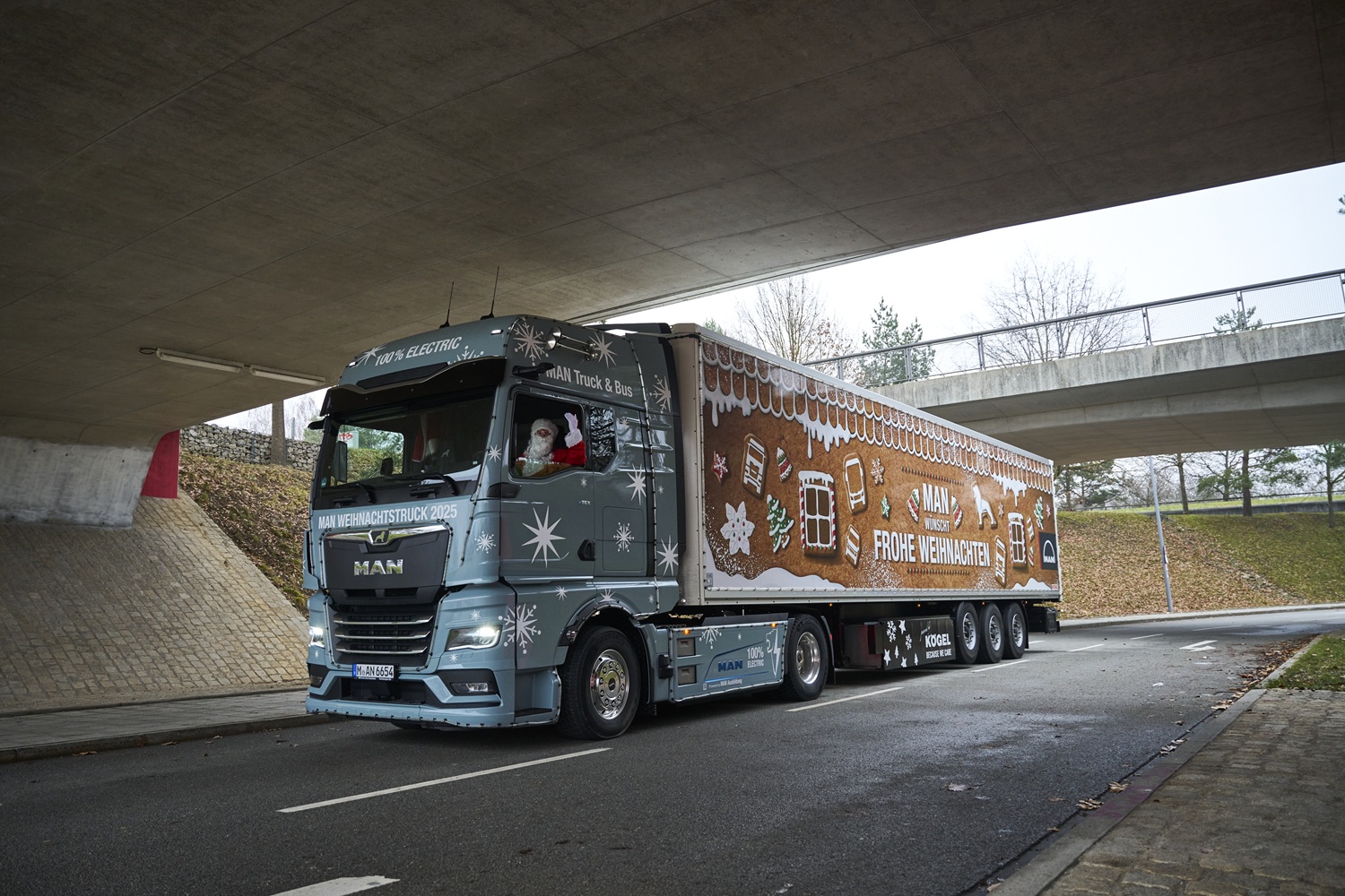 Az MAN Truck&Bus immáron 20 éve minden évben útnak indítja karácsonyi kamionját. A kezdeményezésben egészen mostanáig dízel vontatók vettek részt, de a bajor gyártó úgy döntött, hogy ezúttal elektromosra cseréli az ünnepi kamiont. Az MAN eTGX hat darab akkumulátorral van felszerelve és egy feltöltéssel legalább 570 kilométer tud megtenni. Ez bőven elég ahhoz, hogy a december végéig tartó napi “fuvarfeladatait” ellássa.