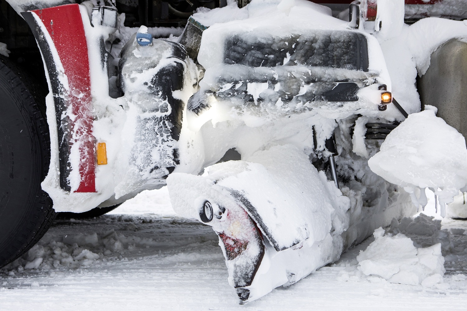A teherautó meglehetősen feltűnő fényezést kapott. A piros fülkét már messziről fel lehet ismerni. Erősen kiemelkedik a fehér, havas háttérből, így a hókotró már nagyobb távolságból észlelhető. Emellett a piros hagyományosan a “veszélyre” való figyelmeztetés színe a közlekedésben. A hóeltakarítást végző járművek esetén ez ösztönzi a többi járművezetőt a fokozott óvatosságra és a követési távolság növelésére. Hogy mire kell figyelni amikor hókotrót látunk az utakon, azt az alábbi cikkünkben foglaltuk össze: