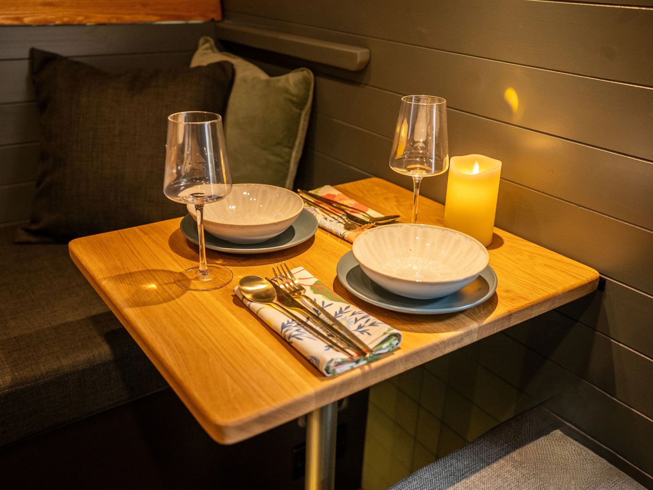 Az ágy mellett egy ülőpadot és beépítettek, ezen azonban utazni nem szabad menet közben, mert nincs rajta biztonsági öv. Van azonban egy vitathatatlan előnye: egy kihúzható konzol révén a száraz toalett is igénybe vehető. A Phantom névre keresztelt kemping furgont az önellátás jegyében tervezték meg, ennek köszönhetően 300W teljesítményű napelemeket is szereltek a tetőre. Az így megtermelt energiát egy 200 Ah kapacitíású lítiumion akkumulátorban tárolja el a rendszer, aminek része még egy inverter is.