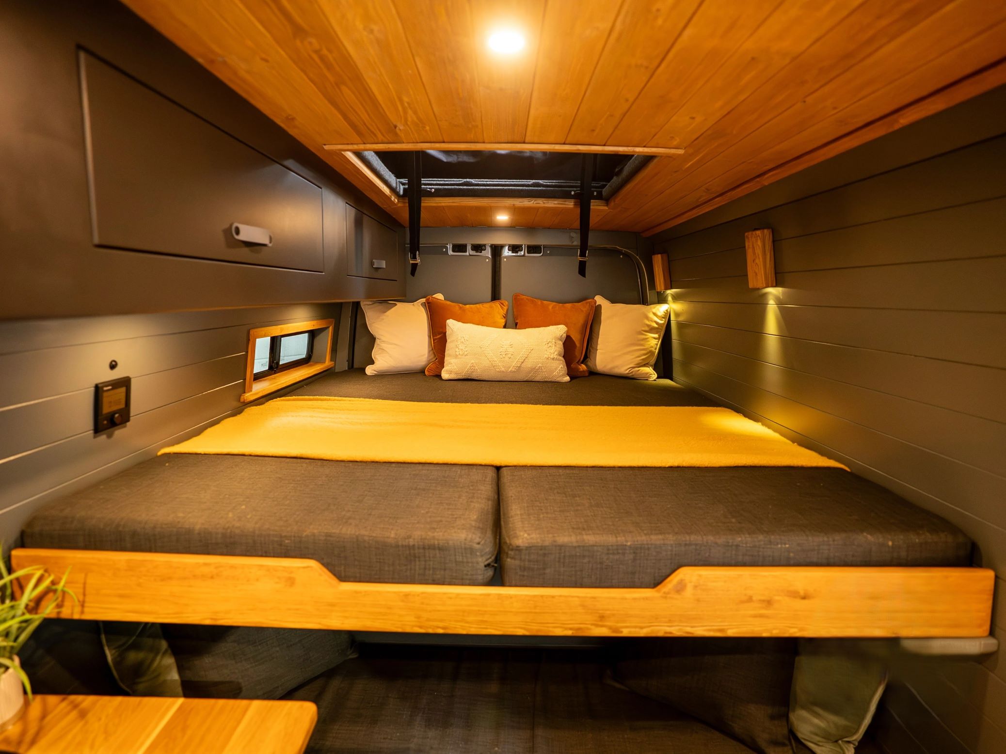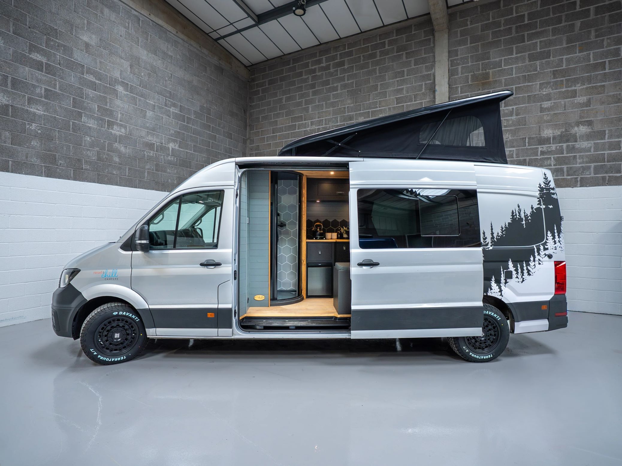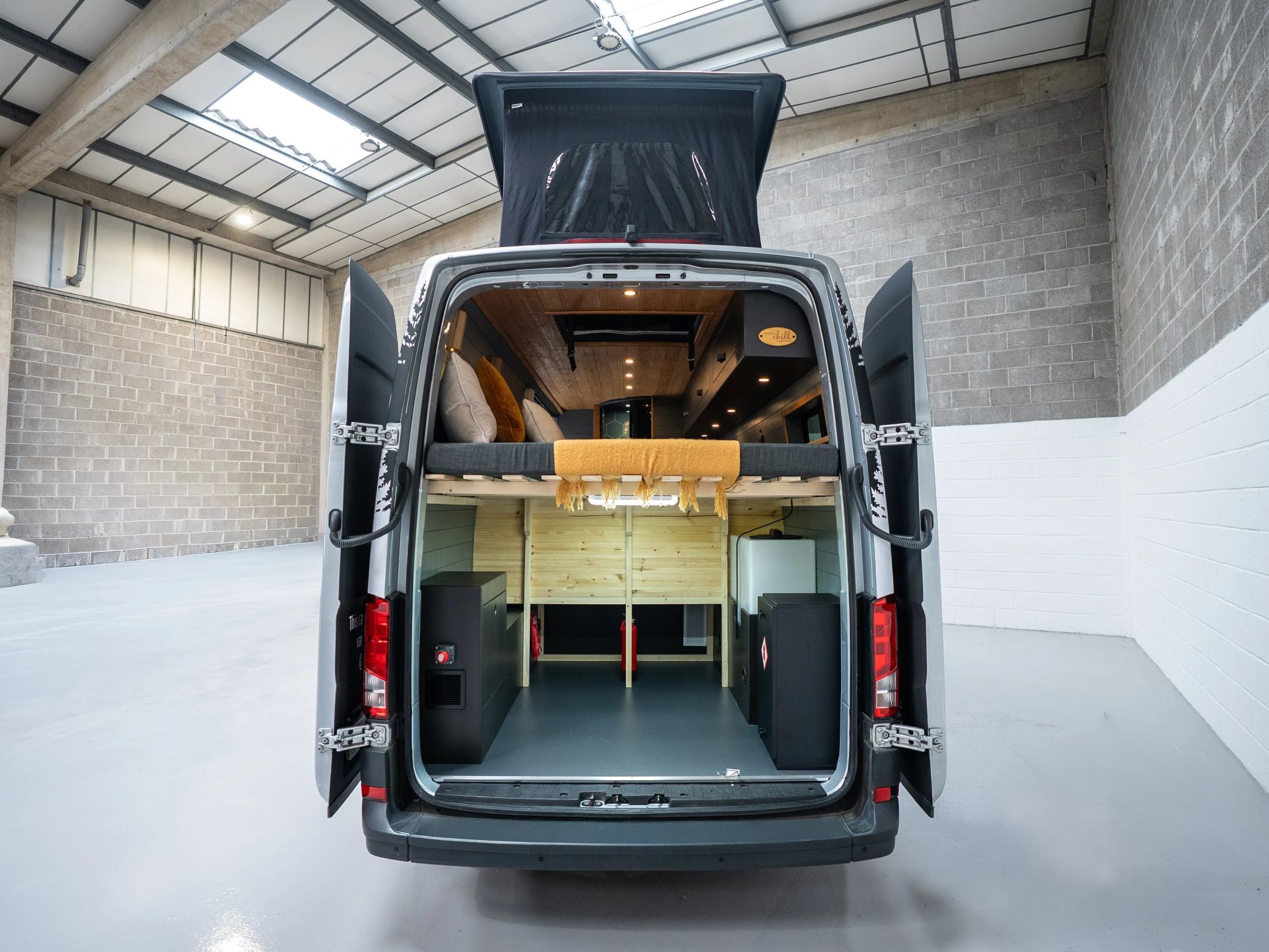 Alig 68 ezer kilométer volt benne, amikor megszűnt létezni áruszállítóként és a Reset and Chill Campers nekilátott átalakítani lakófurgonná a Vanny Campers számára. A brit cég kellő ízléssel látott neki a munkálatoknak és nem fukarkodott a luxusra hajazó megoldásoktól sem. Már az elrendezés is nagyon kreatív és fejedelmi. Az oldalsó tolóajtóval szemben egy zuhanykabint építettek be, amely a fa lécek miatt olyan hatást kelt, mintha csak egy kerti szerszámtárolóból alakították volna ki.