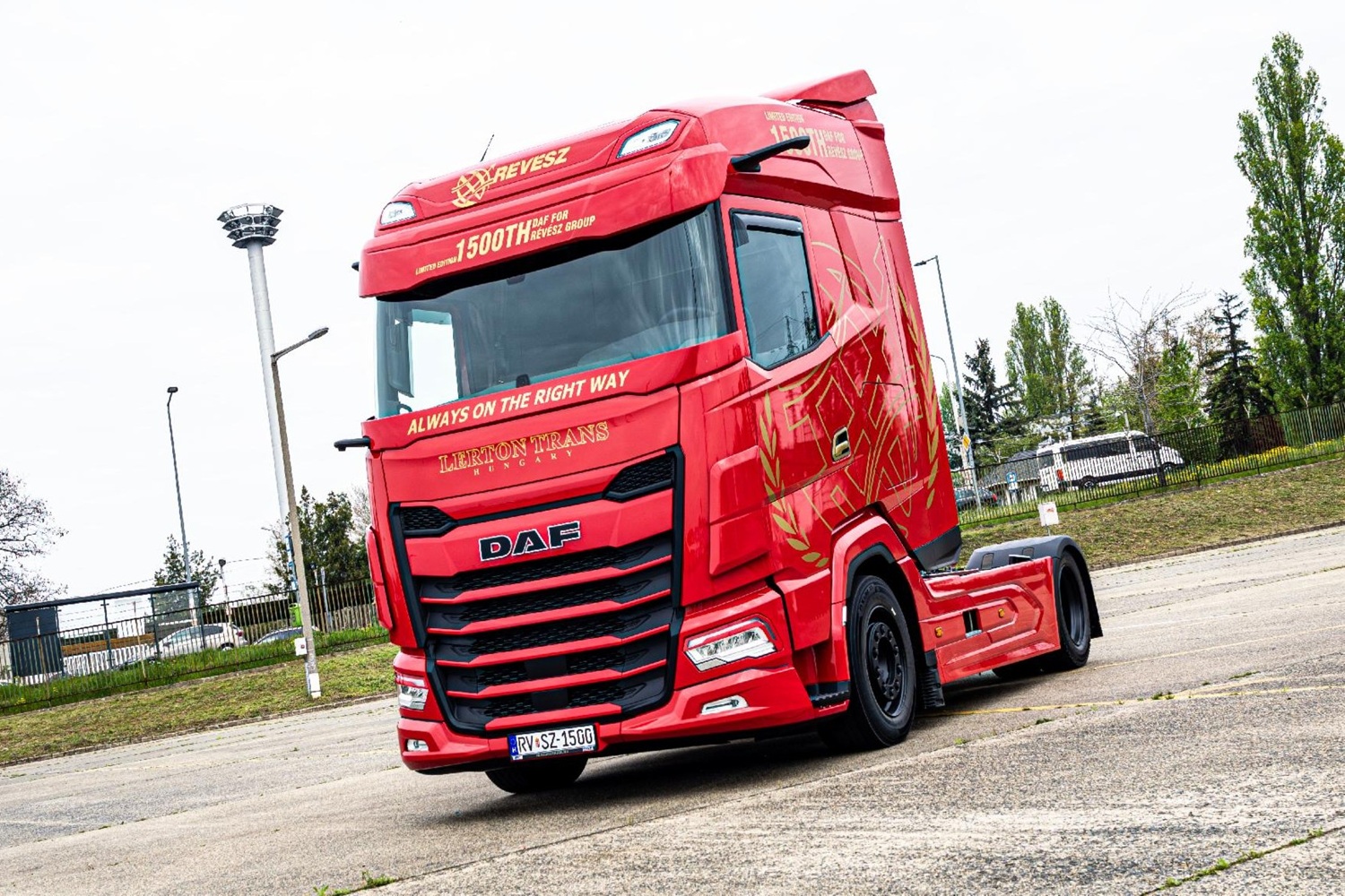 A 17. kerületben található DAF főhadiszálláson – az egykori Hungarocamion telephely szomszédságában – kapott helyet egy 4×2 hajtásképletű DAF XG 480 típusú nyerges vontató. A piros jármű fontos mérföldkövet képvisel nemcsak a DAF, hanem a Révész Logisztikai Holding Zrt. történetében. Ez lett ugyanis az 1500. DAF márkájú nyerges vontató, amit a nyíregyházi cégcsoport átvehetett. Az újdonság a Révész Logisztikai Holding Zrt. leányvállalatához, a Lerton Transhoz került.