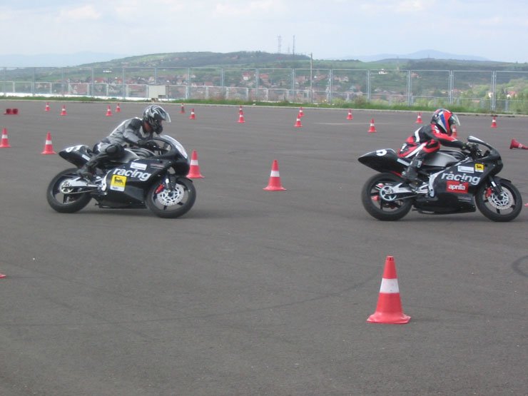 Az elméletet kissé módosított Aprilia RS 125-ös motorokon vittük át a gyakorlatba. Persze voltak olyan résztvevők, aki nagyobb motorral érkeztek, de egy 125-ös motort is nagyon nehéz igazából kimotorozni. Kis súlya miatt ráadásul kanyarokban szinte verhetetlenek ezek a motorok. A sebességre sem lehet panasz, mivel a kétütemű 37 lóerős gépekkel 170 km/órás sebességre is felgyorsultunk a célegyenesben.