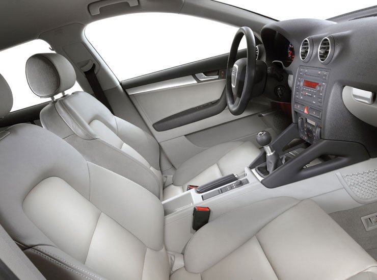 A műszerfal a megszólalásig hasonlít az A3-éra, egyedül a trapéz hűtőmaszk formáját ismétlő kormánykerék jelent eltérést, de csak bizonyos modellekben. Újdonság viszont a 2005 elejétől megrendelhető Open Sky nevű panoráma üvegtető.