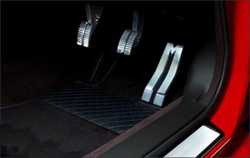 Az utastérben sportülések, légzsákos sportkormány és alumínium pedálok kaptak helyet. Utóbbiak közül a gázpedál M betűt mintáz
