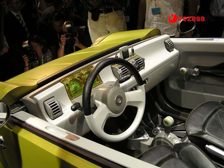 A külsőn kívül az elsüllyeszthető szélvédőüveg is a dzsipeket követi az előrebillentve eltávolítható szélvédőkerettel, amelynek az orr-részben jut hely. A tanulmányon a smart külső zsanéros ajtókat alkalmaz.