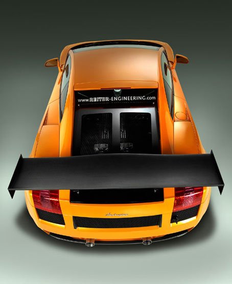 [bekkep]A csapat elsősorban az aerodinamikára és a futóműre koncentrált. Hatalmas szárny került a motorháztetőre és méretes diffúzor a lökhárító alá, amely jelentősen növeli a Gallardo kanyarsebességét. Az első spoiler sem kerülhette el az átalakítást, oldalt kinyitották, hogy javítsák a hűtők teljesítményét.