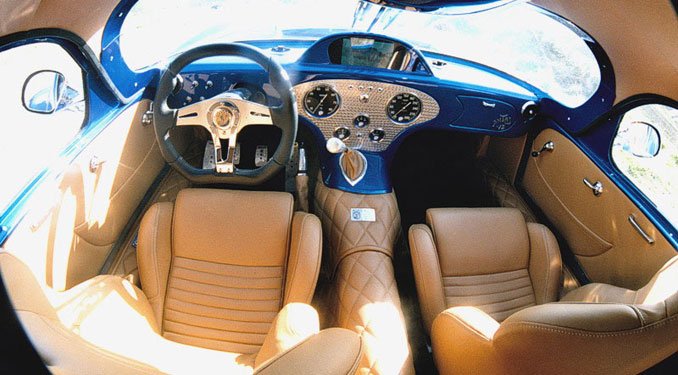 Ablaktörlői csápokként merednek ki a tetőből, belsejében pedig kényelmes, puha bőr várja az utasokat. Az autó beindítása sem a megszokott módszerrel történik, hiszen a gyújtáskapcsoló a vadászgépek fegyverzet élesítő gombjára hasonlít, az indítómotor pedig gombnyomással helyezhető feszültség alá.