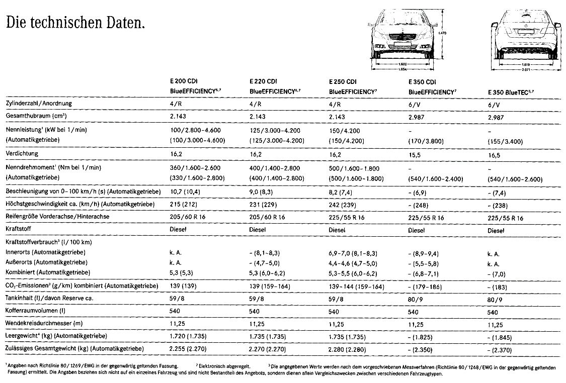 Mindössze két blokkból állították össze a hattagú dízelkínálatot a stuttgarti szakemberek. A 2,2-es motor háromféle, 136, 170 és 204 lóerős teljesítménnyel vásárolható meg. Aki a fogyasztásra hajt, annak a leggyengébb variáns a nyerő, az beéri 5,3 liter gázolajjal átlagosan. Kisebb testvéréhez hasonlóan a 3,0 literes V6-osnak is van 210, 224 és 231 lóerős változata, mindhárom maximális nyomatéka 540 Nm.
