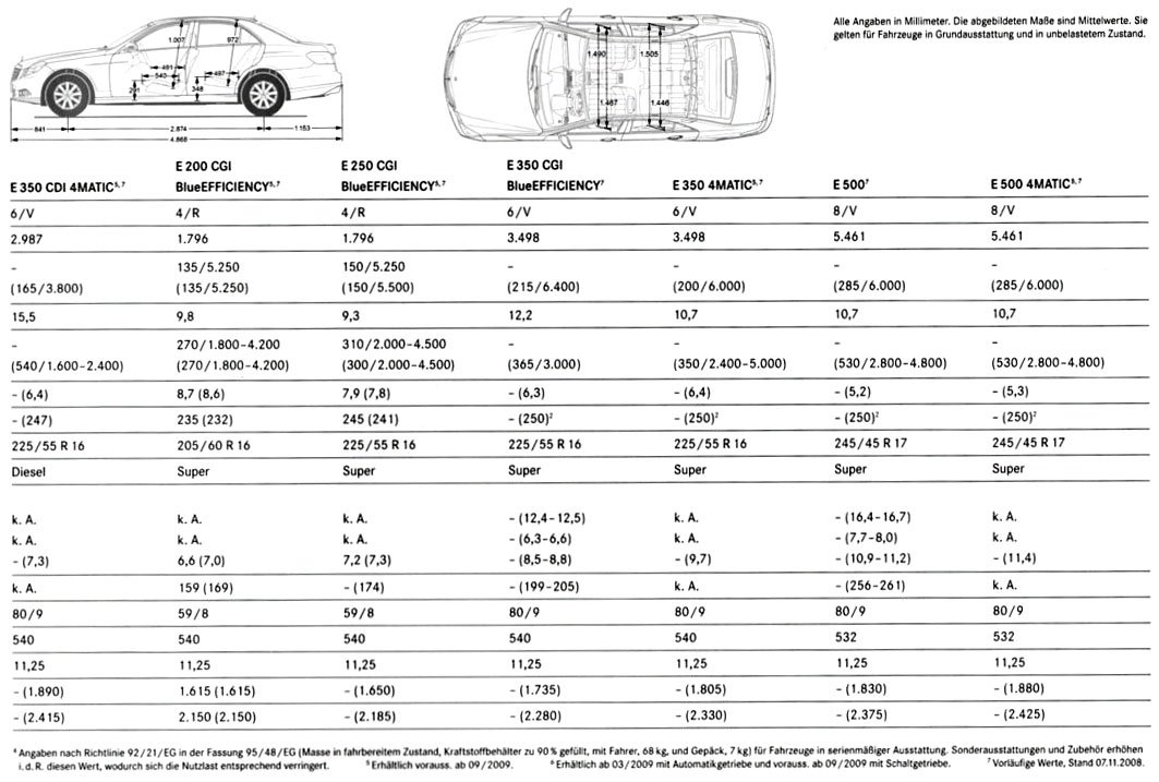 A prospektusból kiderül, hogy az autó 4,868 méter hosszú, miközben a tengelytávolsága 2,87 méter, mindkettő kismértékben nőtt. Eleinte hat dízel és hat benzines változatban lesz elérhető az új középkategóriás Mercedes. Amellett, hogy alapvetően hátsókerék-hajtású az autó, mindkét motorvariáció elérhető összkerékhajtással is.
