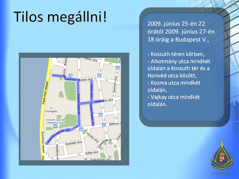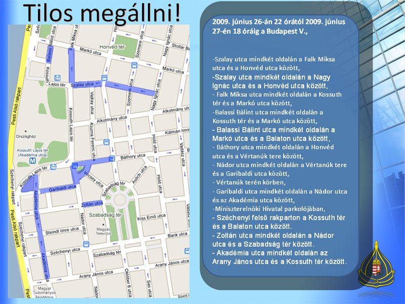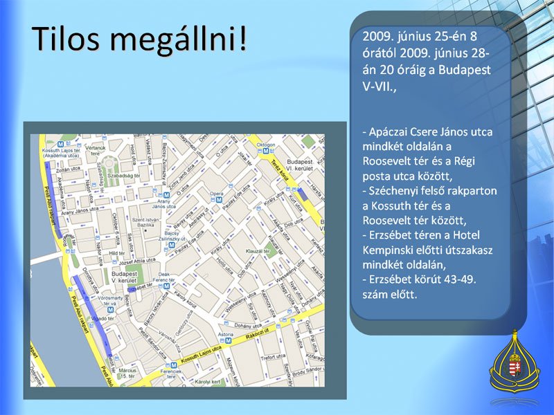 2009. június 25-én 22 órától 2009. június 27-én 18 óráig a Budapest V.,