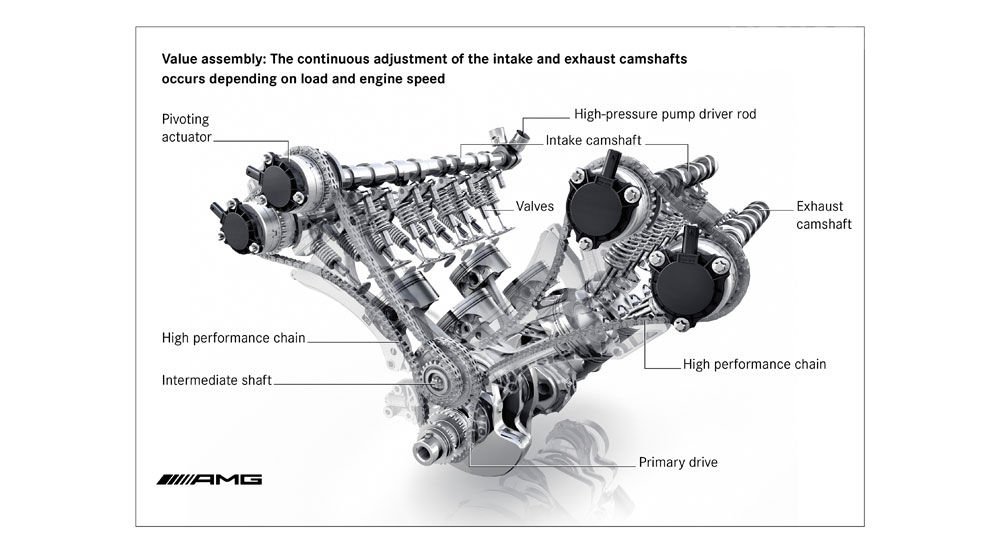 Az új közvetlen befecskendezéses motor alaphelyzetben 544 lóerős, miközben maximális nyomatéka 800 newtonméter, ám az úgynevezett AMG teljesítménycsomag megrendelésével 571 lóerő, illetve 900 Nm szerepel a motor mellett. A pluszlóerők a turbónyomás 1,1-ről 1,3 barra történő emelésével kerülnek elő.