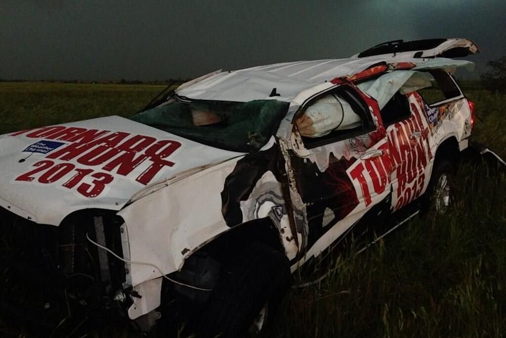 A méregdrága technológiákkal felszerelt, több mint kéttonás autót papírszemétként kapta fel a szél. Hatszor-nyolcszor megforgatta, majd mintegy kétszáz méterrel odébb, egy mezőn földhöz csapta.