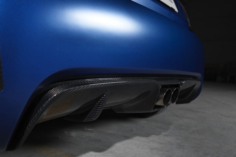 A friedrichshafeni mester ezért először is a csupasz lemezekig bontotta le az autót, majd a karosszériapaneleket aerodinamikai szempontból optimalizált, szénszálas elemekre cserélte. Elöl bővebben ömlik a jótékony hűtőlevegő a motortérbe, hátul hatékony diffúzor szorítja az aszfaltra az autót.